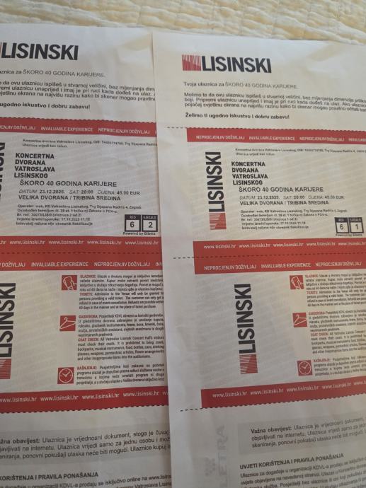 Prodajem 2 karte za koncert Miroslava Škore u Lisinskom za utorak, 23.12.'25 u 20h.