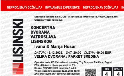 Prodajem 3 ulaznice za Božićni koncert Ivane & Marije Husar
