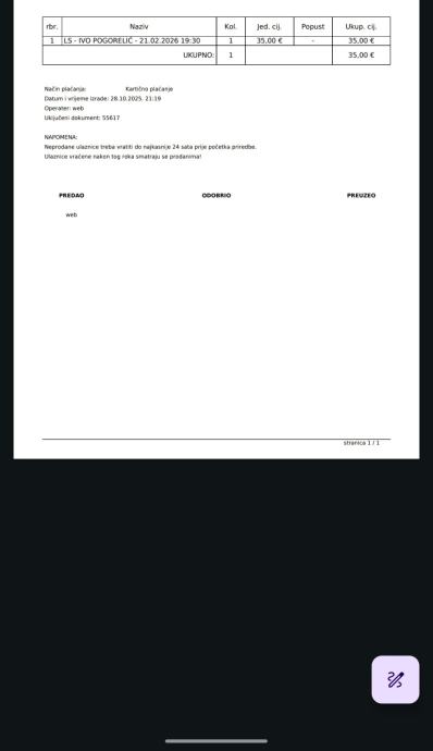 Jedna karta kupljena 28.10.2025.