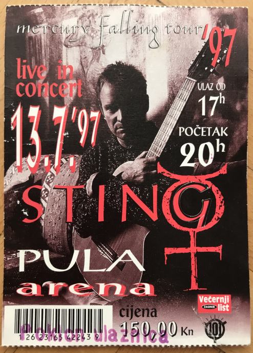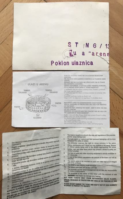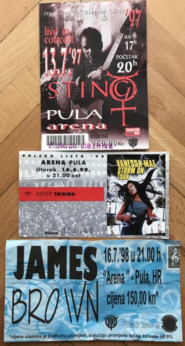 2 ulaznice za koncerte 1997./98. iz pulske Arene: Sting + Vanessa Mae