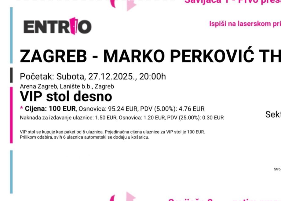 Prodajem 6 VIP ulaznica sa stolom za koncert u Zagrebu 27.12.2025.