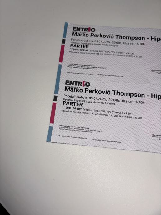 Prodajem dvije karte za parter za koncert Thompsona 5.7 na hipodromu