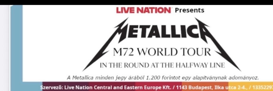 Prodajem dvije karte za tribinu sektor 340 za dva dana koncerta Metallice - 11.6 i 13.6.2026. u Puskas Areni u Budimpesti