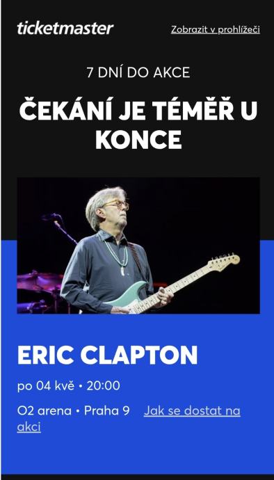 Prodajem dvije karte za koncert Eric Claptona u Pragu 04.05.2026 u O2 Areni