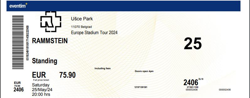 Prodajem jednu kartu za Rammstein, 25.05.24. stajanje u Beogradu.