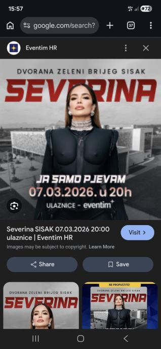 Prodajem dvije karte za Severinu u Sisku 7.3.2026. Iskljucivo u kompletu - dvije karte za 86,50