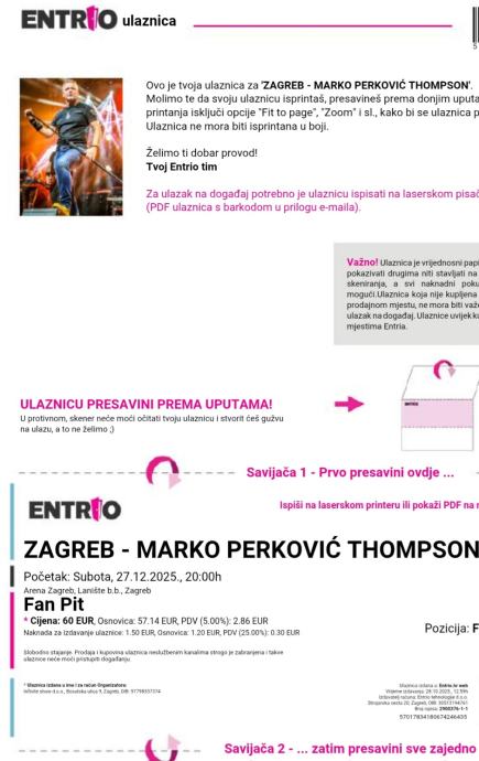 Prodajem jednu (1) kartu za Fan pit za Thompsonov koncert u Areni 27.12.2025. po nabavnoj cijeni 60€