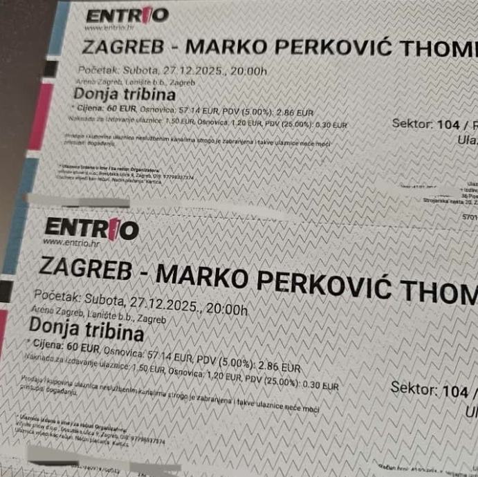 Thompson Arena Zagreb dvije karte komplet za donju tribinu sektor 104