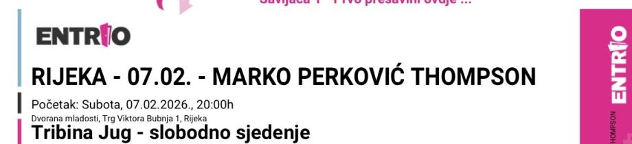 Prodajem dvije ulaznice za koncert Marka Perkovića Thompsona u Rijeci, subota 07.02.