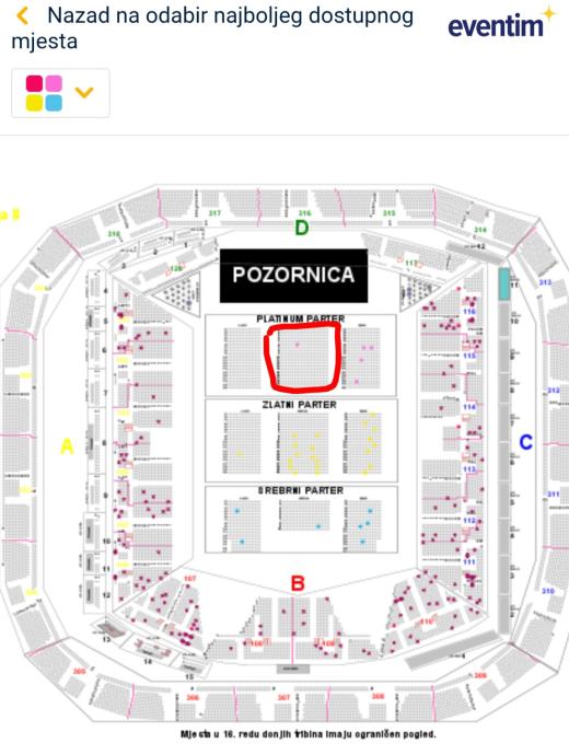 Dvije karte (PLATINUM PARTER SREDINA) zajedno prodajem za 80€.