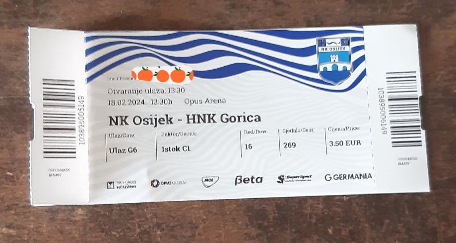 Ulaznica za utakmicu N.K.Osijek - J.K.Gorica
