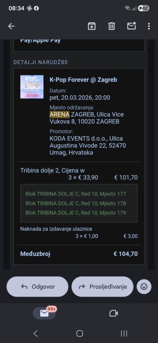 Prodajem 3 ulaznice za koncert K Pop za 20.3.2026.