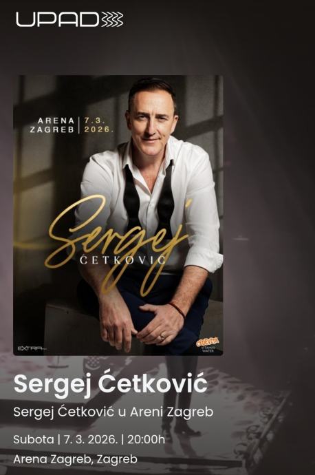 Prodajem ulaznice za koncert Sergeja Ćetkovića u Areni Zagreb. Koncert se održava u subotu, 7. ožujka 2026. godine s početkom u 20:00h. Cijena se odnosi na 2 ulaznice za VIP sjedenje, s ukljucenim parkingom u Areni