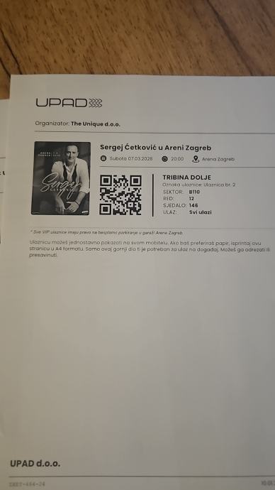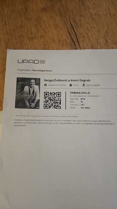 Prodajem dvije ulaznice za koncert Sergej Četković koji će se održati 07.03. u Zagrebu. Na žalost zbog izvanredne situacije nismo u mogućnosti ići.