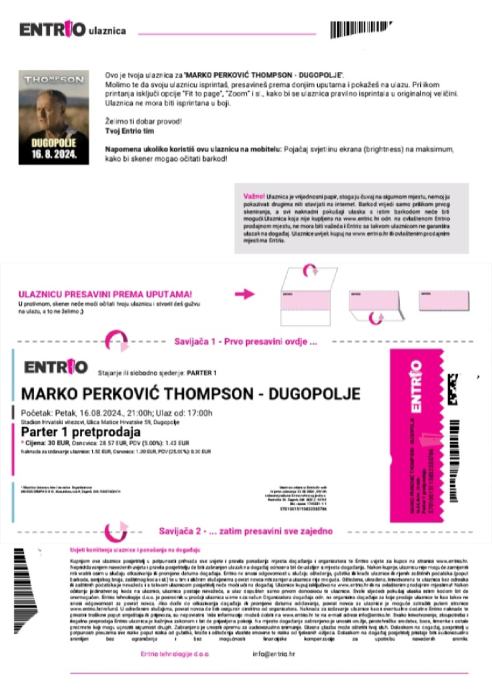 Prodajem 3 ulaznice (Parter 1) za Thompsonov koncert u Dugopolju 16.08.2024. god.