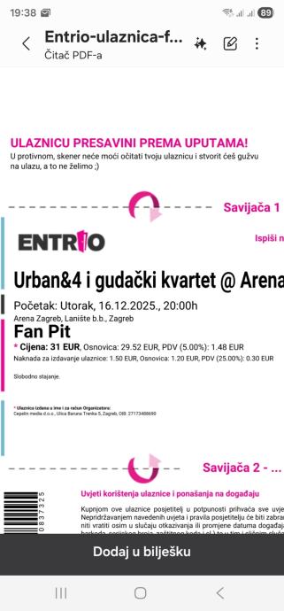 Urban & gudacki kvartet, 2 karte Fan Pit, 16/12