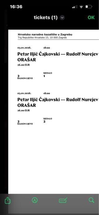 Prodajem 2 karte za Orašara datuma 3.1.2026 u 18:00