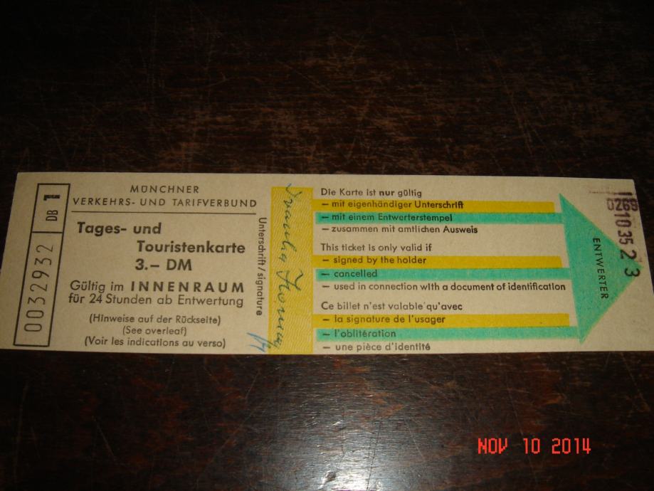karta za dnevni prijevoz u vrijeme Olimpijskih igara MINHEN 1972
