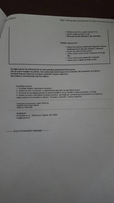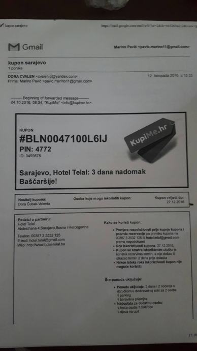 prodajem kupon kupljen preko kupime.hr placen 339,00kn