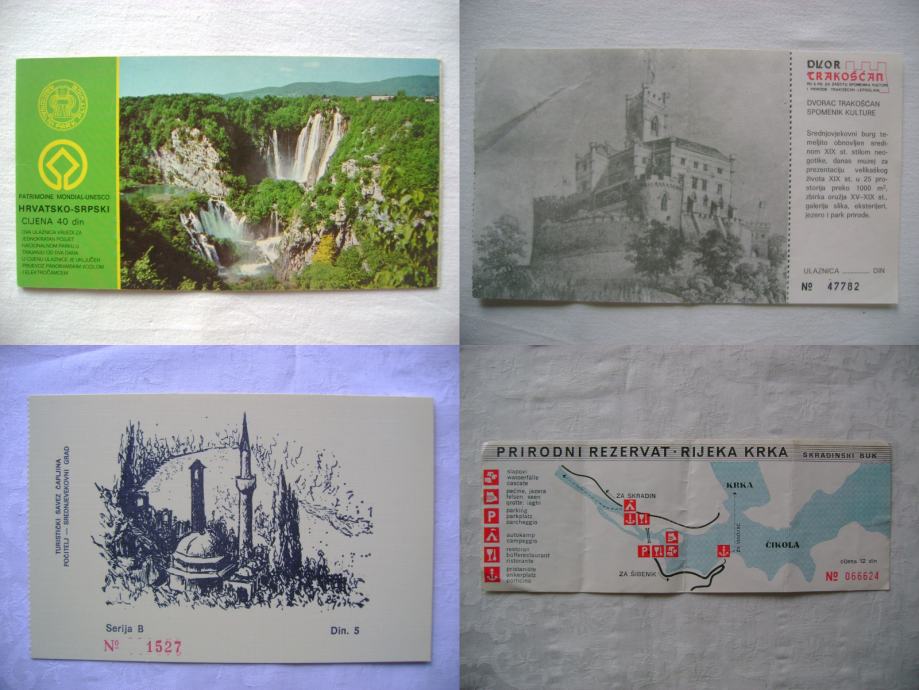Lot starih ulaznica - Plitvice, Trakošćan, Počitelj, Skradinski buk - stanje je vidljivo na slici.