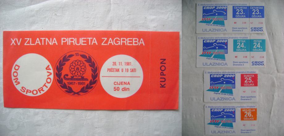 Stare ulaznice - Zlatna pirueta 1981., Stolnotenisko prvenstvo RH 2000