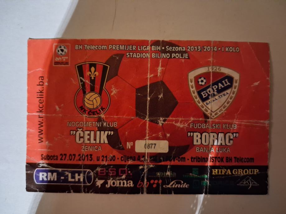 Prodajem ulaznicu sa utakmice : Čelik-Borac ..