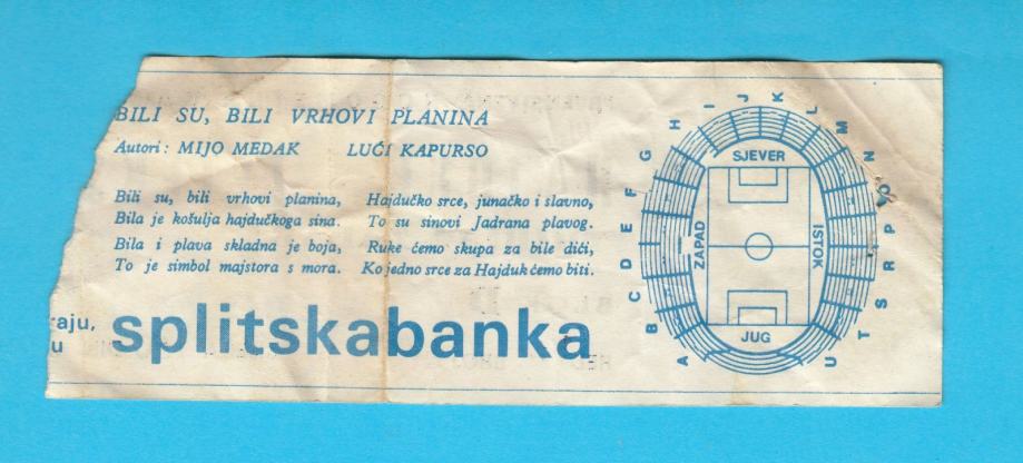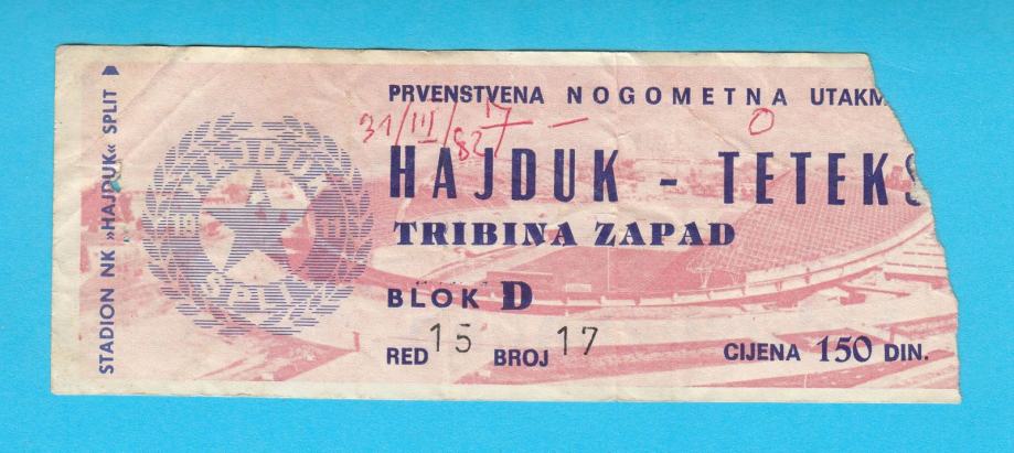 HAJDUK SPLIT v TETEKS - stara x Yu nogometna ulaznica