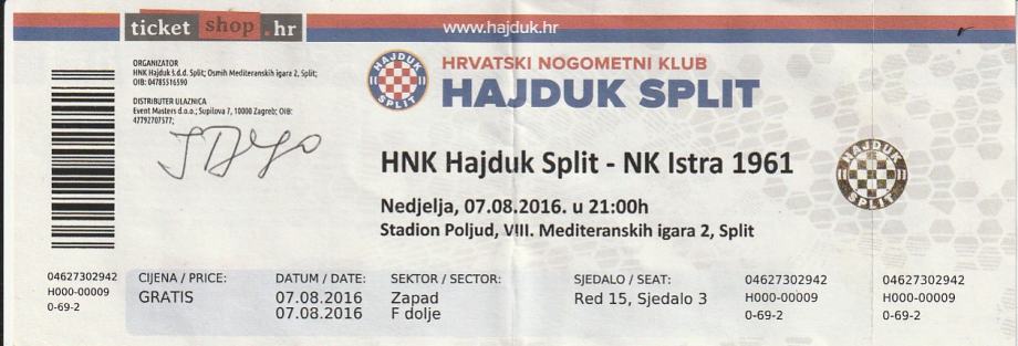 HNK HAJDUK-NK ISTRA 1961 2016-2017 ZAPAD F POTPIS I. BEGO