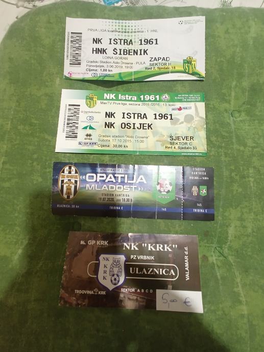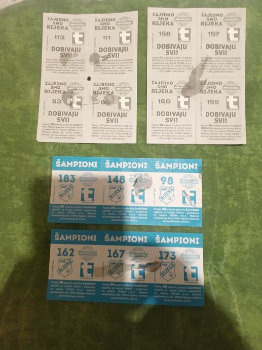 Prodajem mega lot ulaznica i odrezaka HNK Rijeka, 36 ulaznica i 17 odrezaka, jedna koverta, 14 sličica + poklon dvije ulaznice Istra Osijek i Šibenik i Opatija-Mladost i Nk Krk. Cijena za kompletan lot. Plačanje na račun ili gotovina.