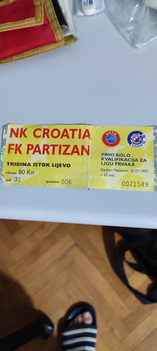 KARTA NK CROATIA - FK PARTIZAN IZ 1997.