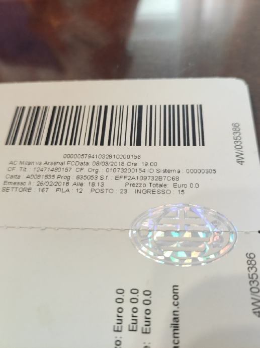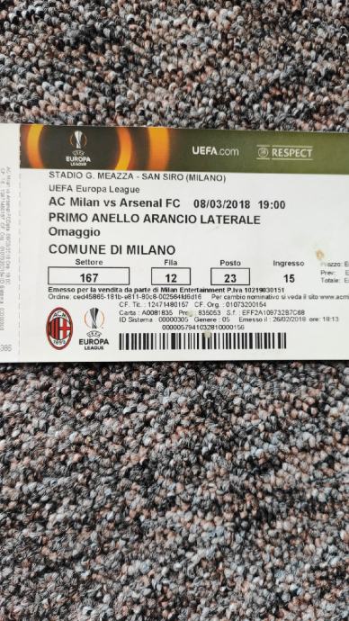 MILAN-ARSENAL ulaznica NEPOKIDANA