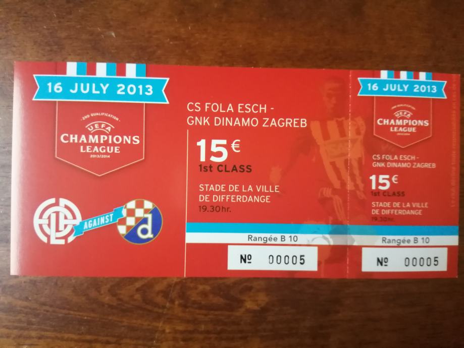 Nogometna ulaznica CS Fola Esch - GNK Dinamo Zagreb, 16.07.2013.