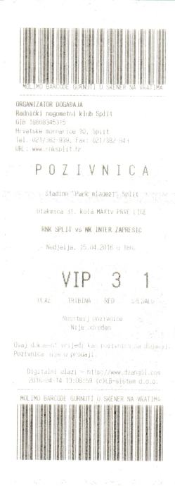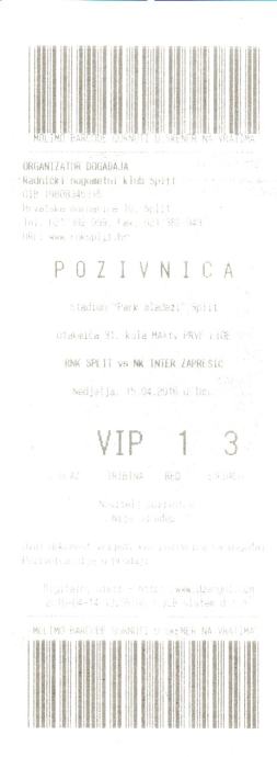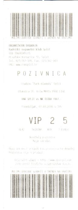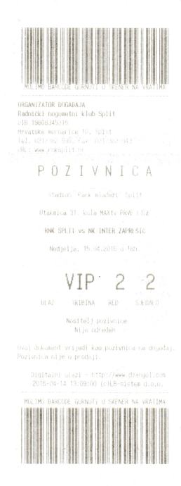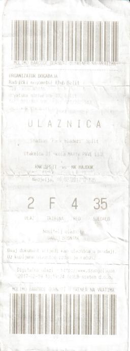 NOGOMETNE ULAZNICE RNK SPLIT Q 4 ULAZNICA 3 € KOMAD