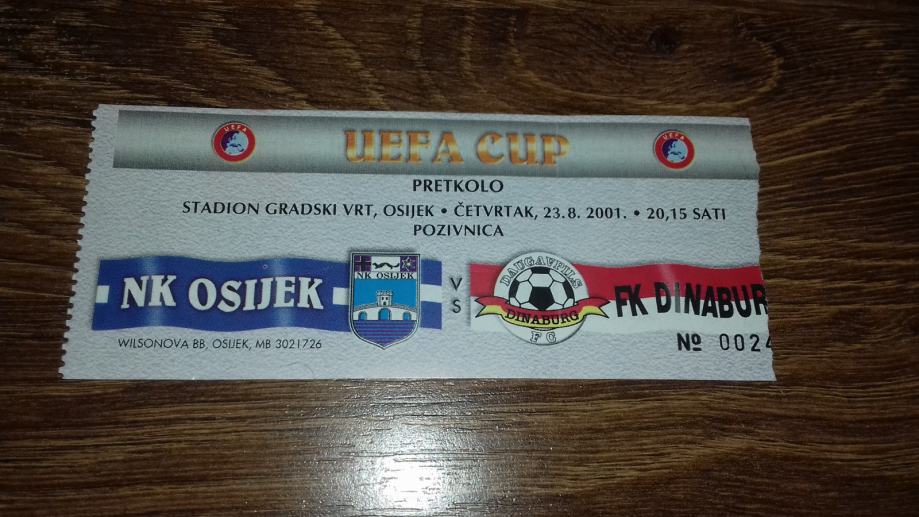 Osijek - Dinaburg ulaznica 23.08.2001., u dobrom stanju.