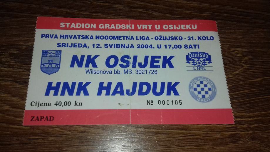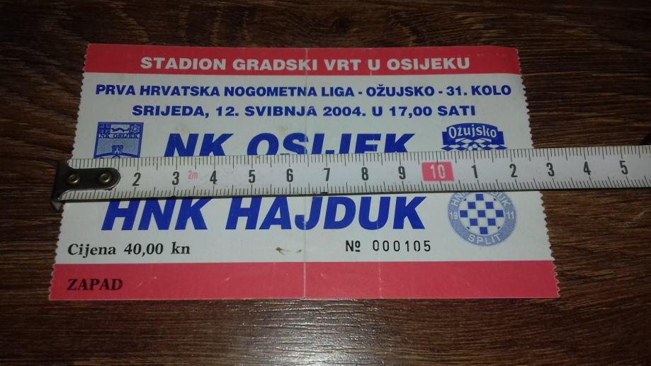 Osijek - Hajduk ulaznica 12.05.2004. u dobrom stanju.