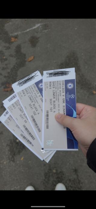 Prodajem 4 ulaznice za gostujuću tribinu za utakmicu Chelsea-Dinamo.