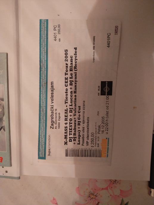 Prodajem staru ulaznicu sa koncerta Zagrebačkog velesajma X-mass 4 Real-Tiesto CEE tour 2005 ( Dj Tiesto+Dj Lucca+Dj Le Blanc...) 16.12-2005 u dobrom stanju. Plačanje na račun ili gotovina.
