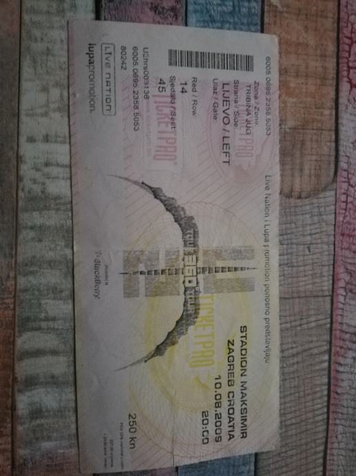 Prodajem ulaznicu s koncerta U2 u Maksimiru 10.08.2009.Vrlo dobro očuvano, kao što se i vidi na slici. Cijena po dogovoru