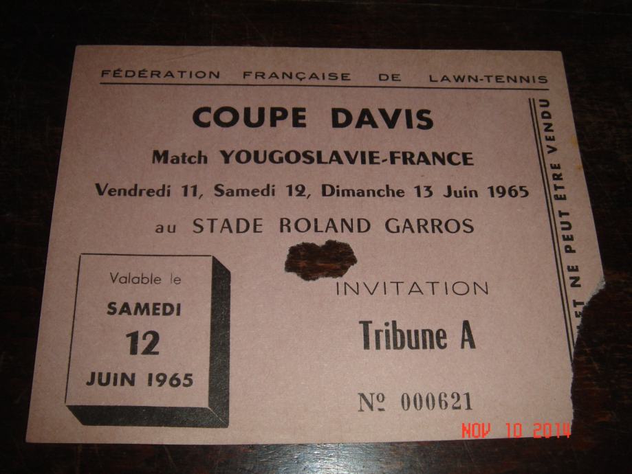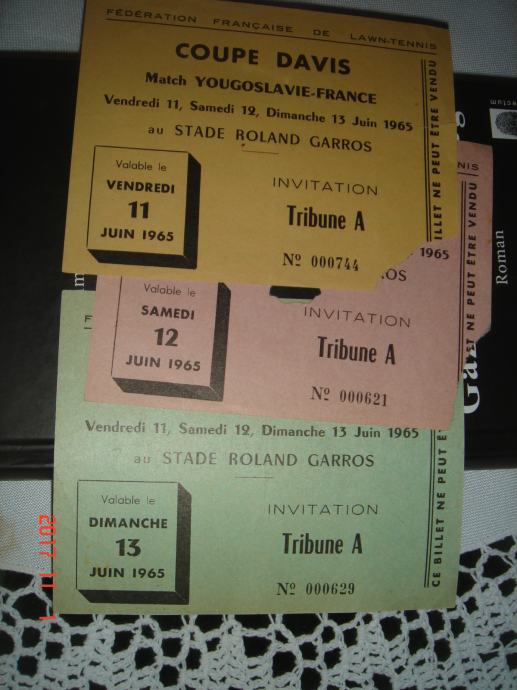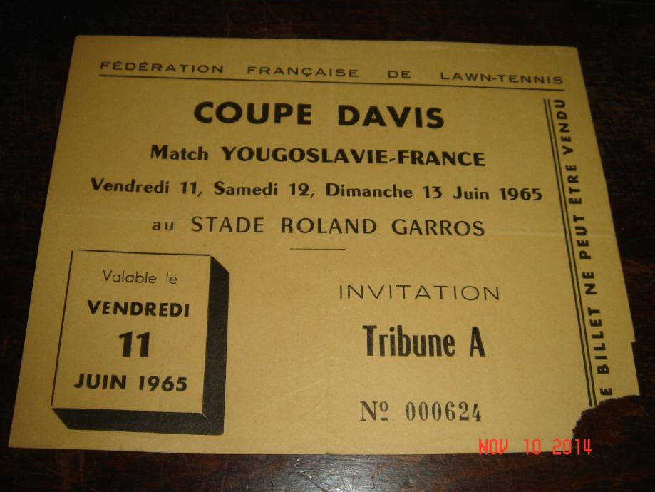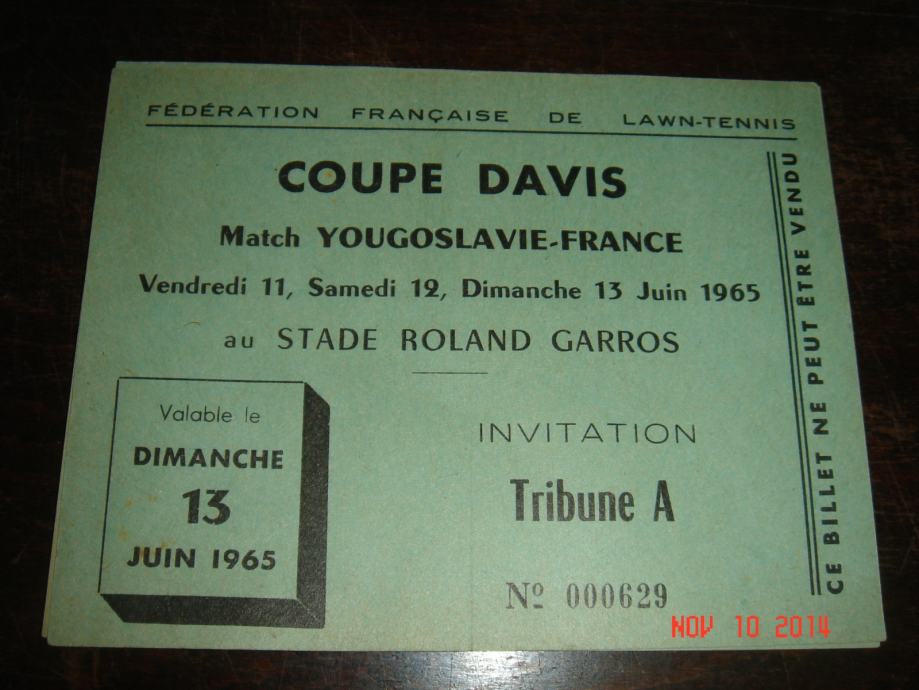 ulaznice za Davis Cup susret Francuska - Jugoslavija u Parizu