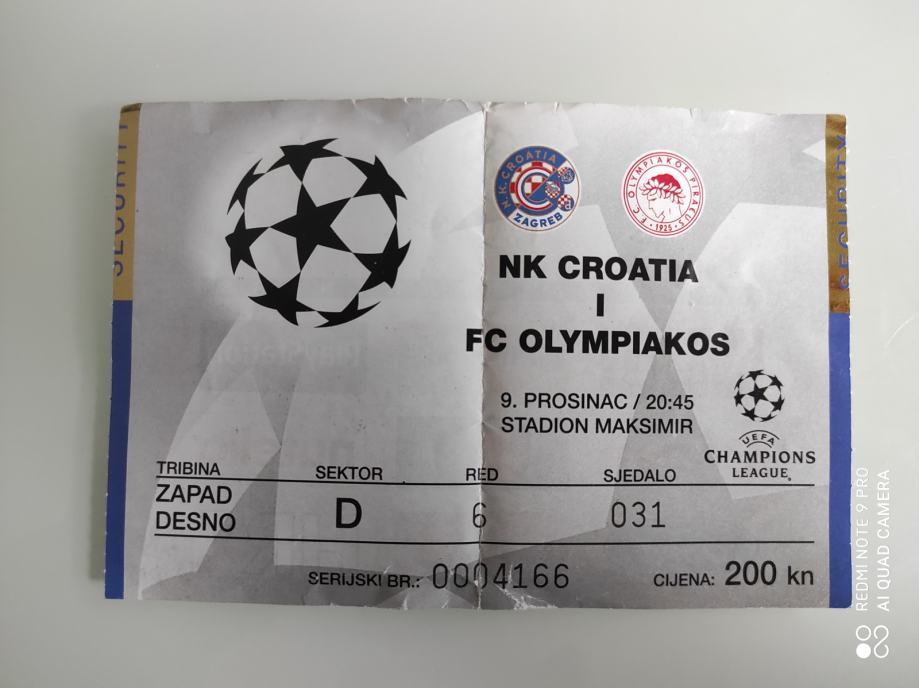ulaznica NK DINAMO (NK CROATIA)-FC OLYMPIAKOS