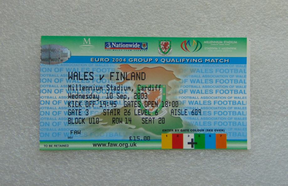 Ulaznica Euro 2004 - Kvalifikacije WALEES-FINLAND - Stadion Cardiff