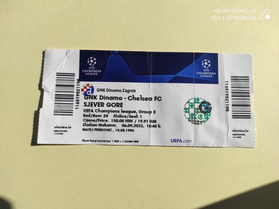 Ulaznica Gnk Dinamo-Chelsea FC 2022