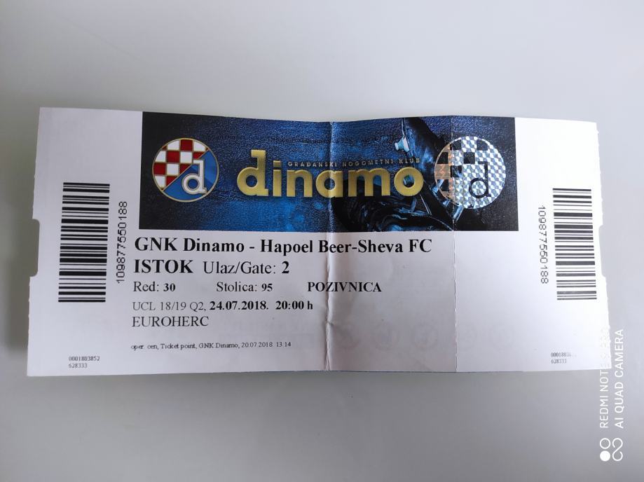 Ulaznica GNK Dinamo - Hapoel Beer-Sheva FC