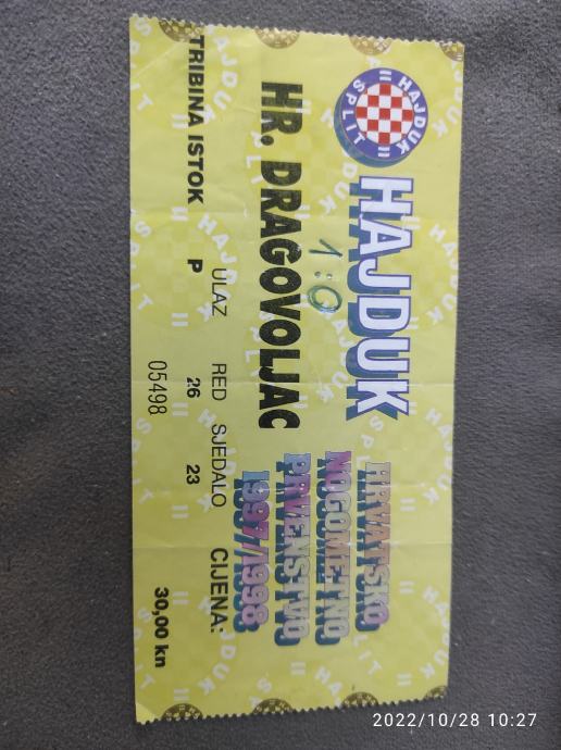 ulaznica Hajduk - hrvatski dragovoljac