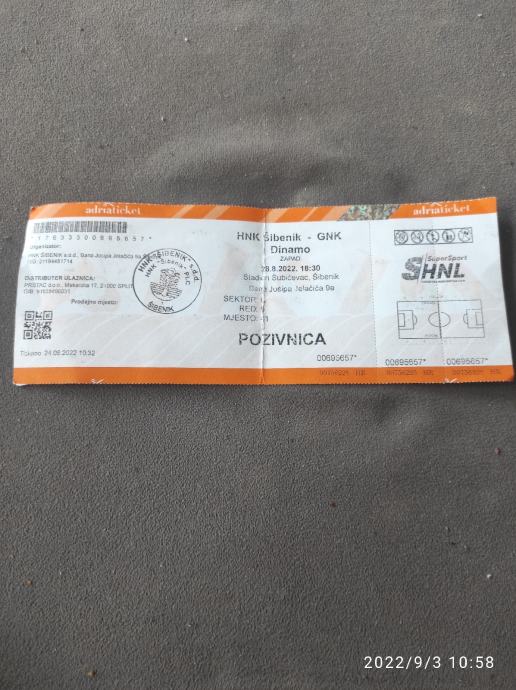 ulaznica HNK Šibenik GNK Dinamo
