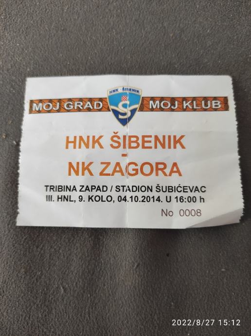 ulaznica HNK Šibenik NK Zagora