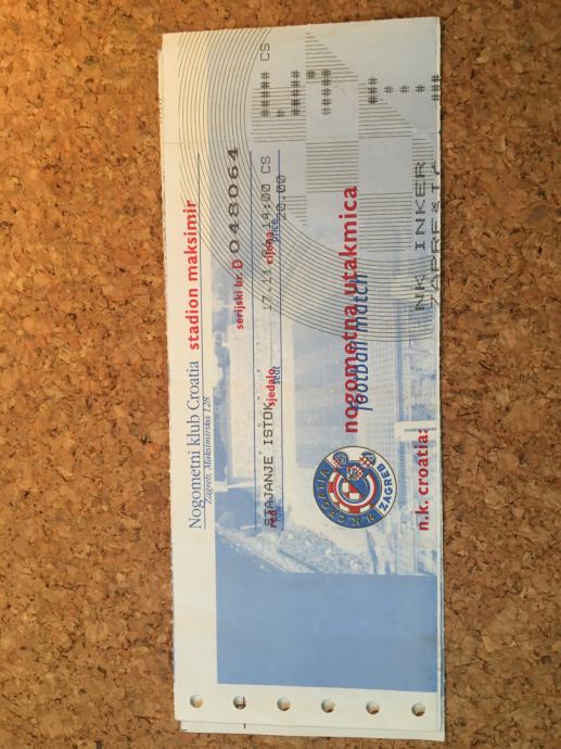 Ulaznica NK Croatia - NK Inker Zaprešić 1996.