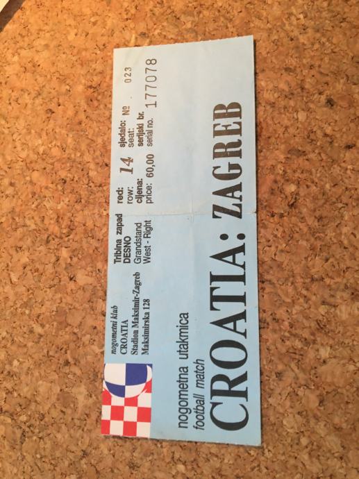Ulaznica NK Croatia - NK Zagreb 1995/96.