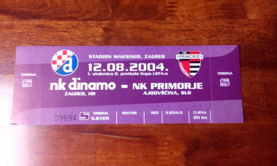 Ulaznica NK DINAMO - NK PRIMORJE - mint stanje