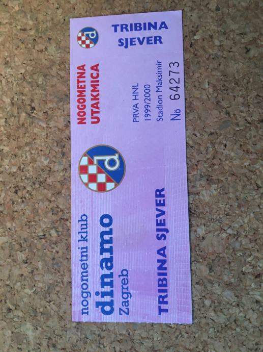 Ulaznica NK Dinamo - Tribina sjever za sezonu 1999/2000